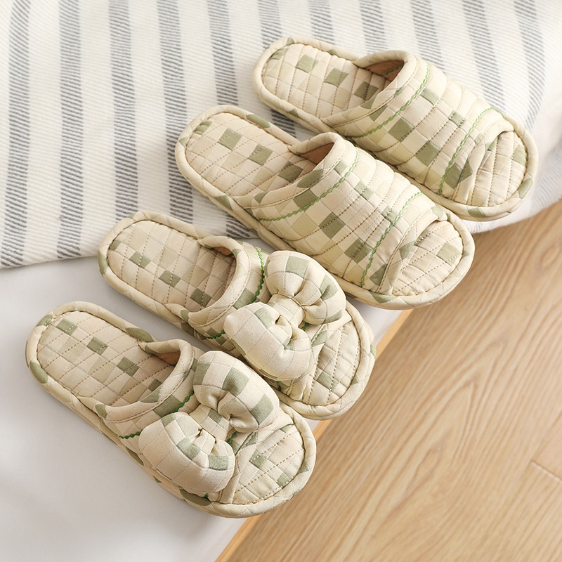 四季日式布艺静音地板拖鞋男女室内家居情侣牛筋底秋季家用居家棉