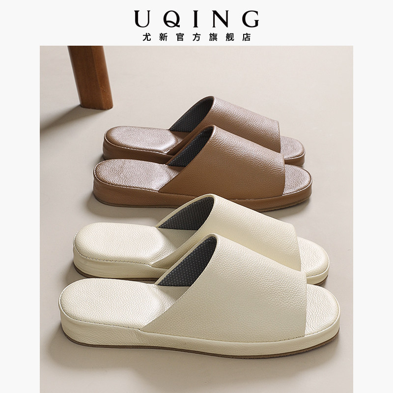 尤新高级感四季牛皮凉拖鞋室内居家厚底透气可外穿情侣2025新款女