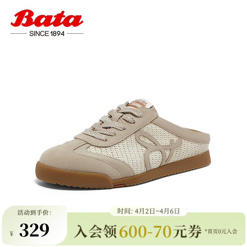 Bata休闲包头拖女季新款牛剖皮凉拖鞋外穿一脚蹬ACO33AH5