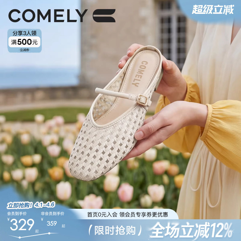 蹀愫26春新绝美外穿懒人一脚蹬苹果头穆勒凉拖鞋编织T76136A-01