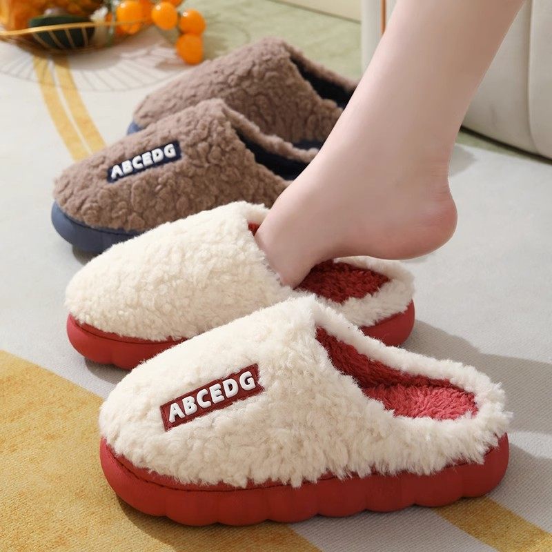 棉拖鞋女冬室内情侣居家加绒加厚静音地板拖防滑保暖棉拖毛毛拖鞋