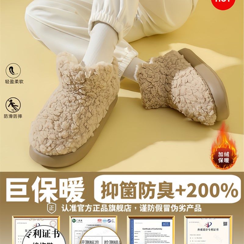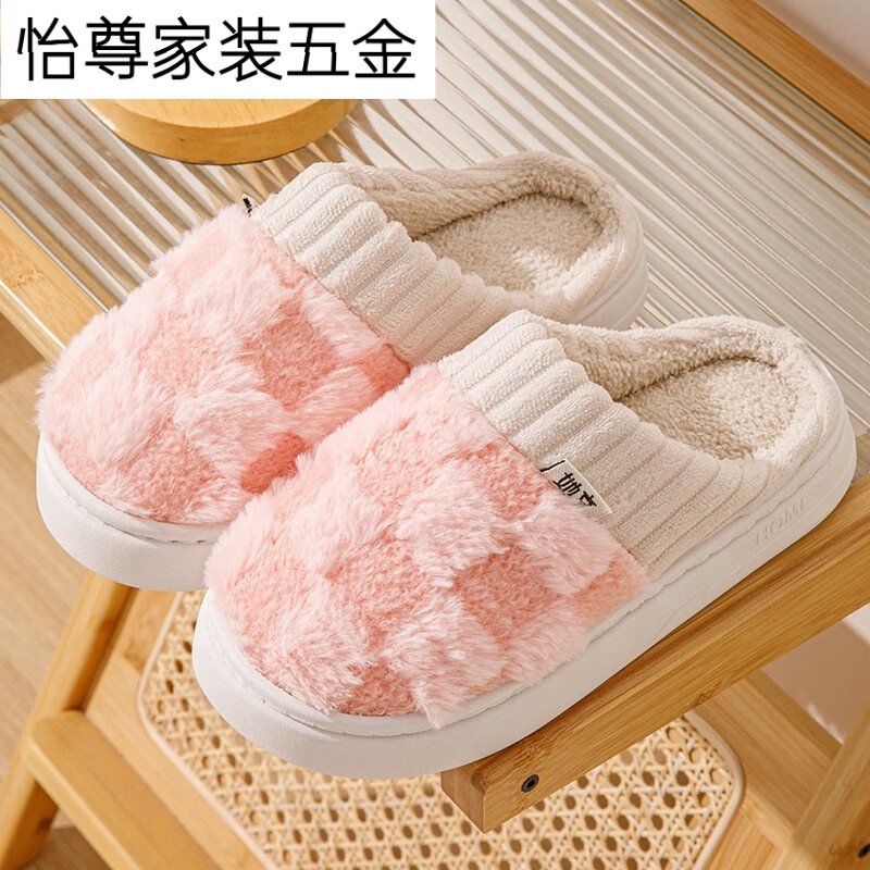 包头棉拖鞋女士秋冬季室内保暖厚底情侣家居一对毛毛绒拖鞋女冬天