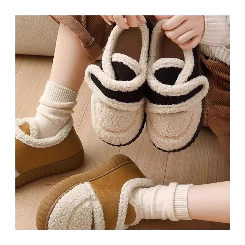 日本进口MUJ女款冬季拖鞋复古小香风情侣棉拖鞋加绒拖鞋厚底防滑