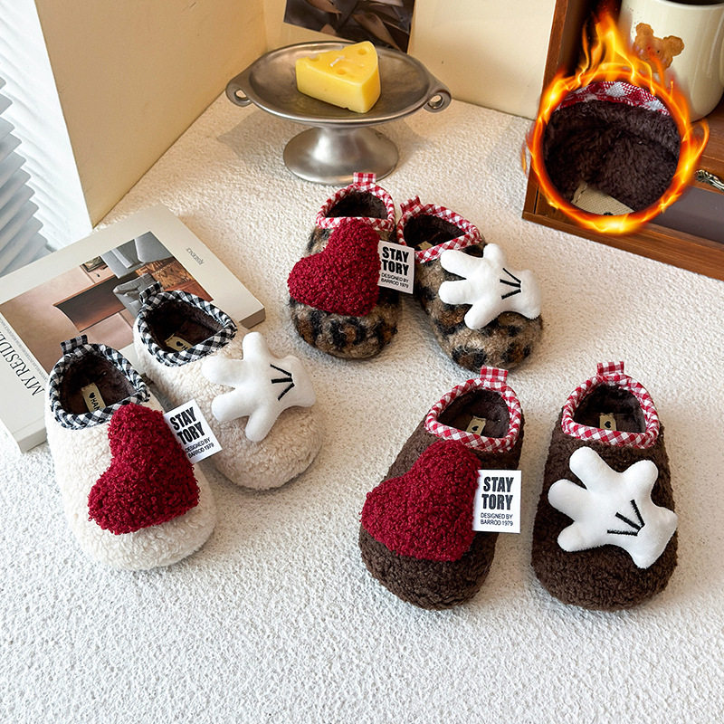 爱心拖鞋室内保暖棉鞋家居家棉拖鞋地板拖防滑软底男女宝宝毛毛鞋