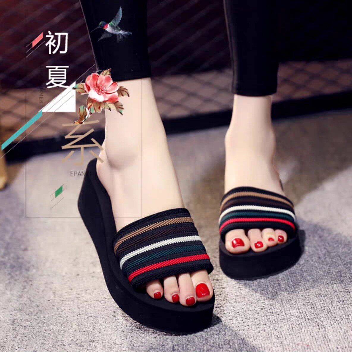坡跟厚底拖鞋女夏季新款高跟一字拖女凉拖居家舒适休闲潮流沙滩鞋
