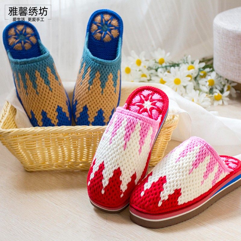 雅馨绣坊diy毛线钩织居家橡胶底四股棉线勾手工水波纹拖鞋材料包