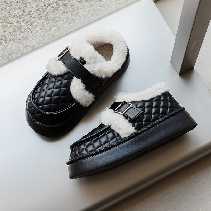 2025新款冬季加绒包头半拖鞋女厚底增高外穿保暖懒人一脚蹬勃肯鞋