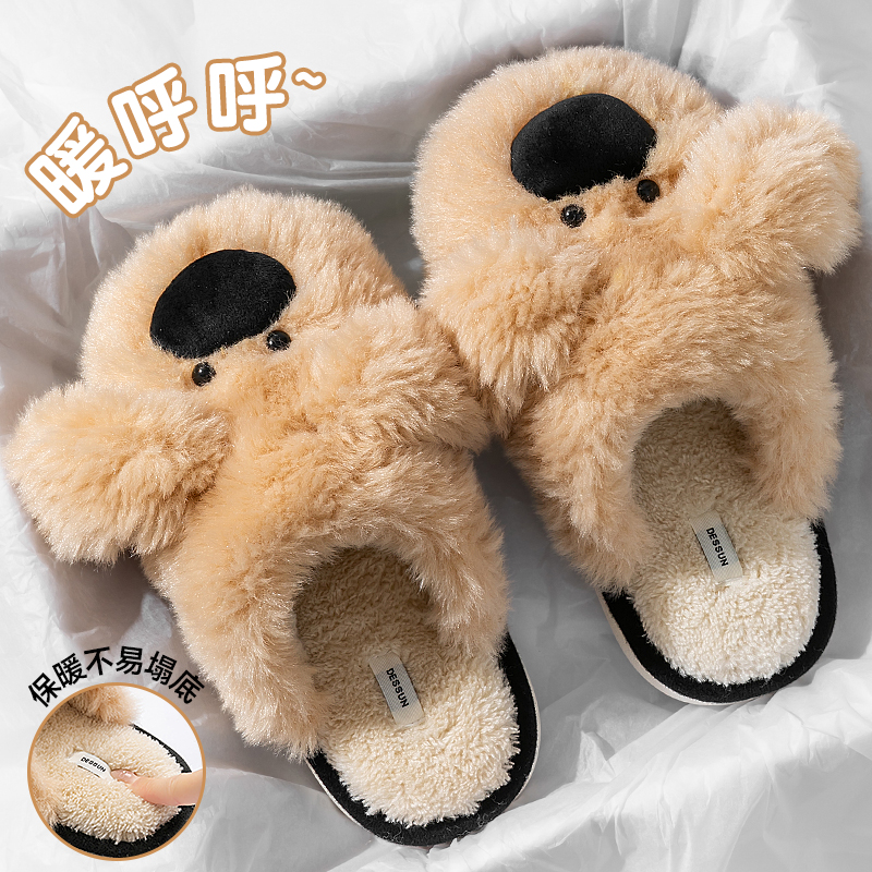 毛毛绒长耳狗棉拖鞋女2025室内家居防滑保暖毛绒敲暖踩屎感棉鞋女