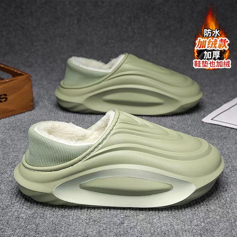 防水棉拖鞋冬季男士防滑外穿家用居家大码防臭加厚U保暖老人棉鞋