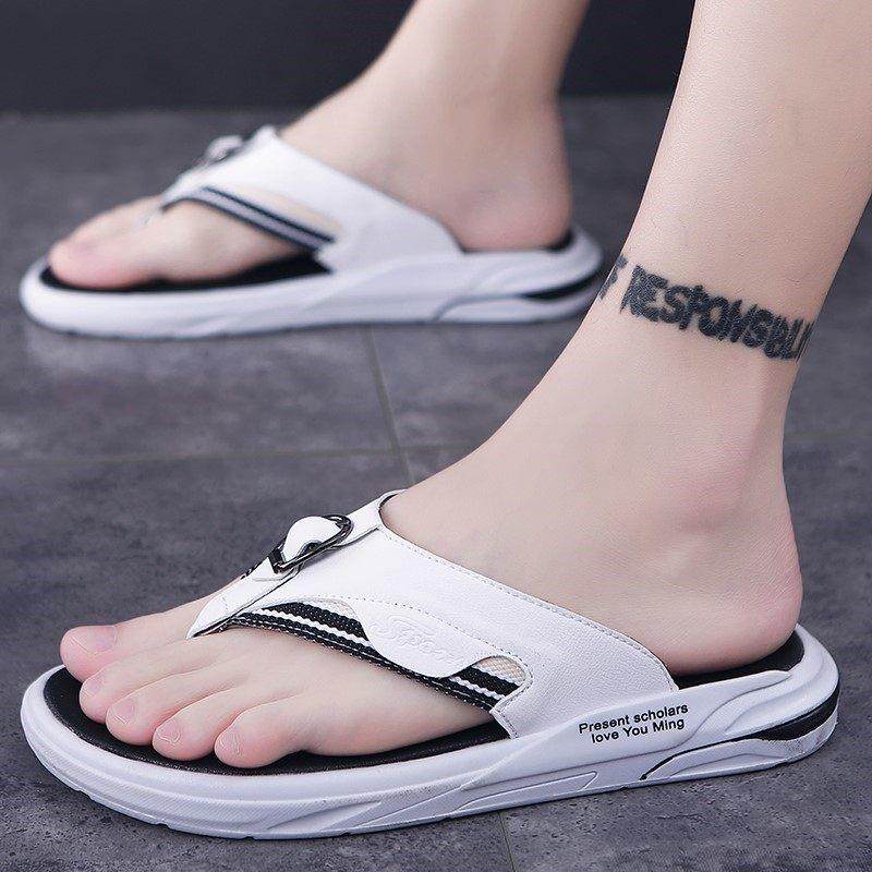 潮牌真皮人字拖男士夏季新款室外皮凉鞋外穿防滑防水个性凉拖鞋男