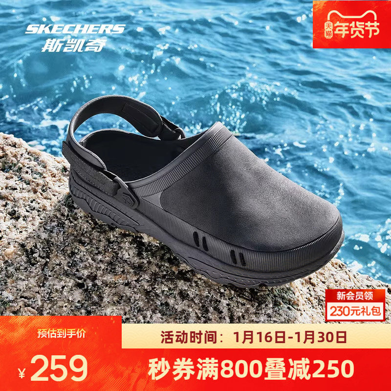 斯凯奇男士舒适休闲运动拖鞋复古配色柔软简约百搭轻便