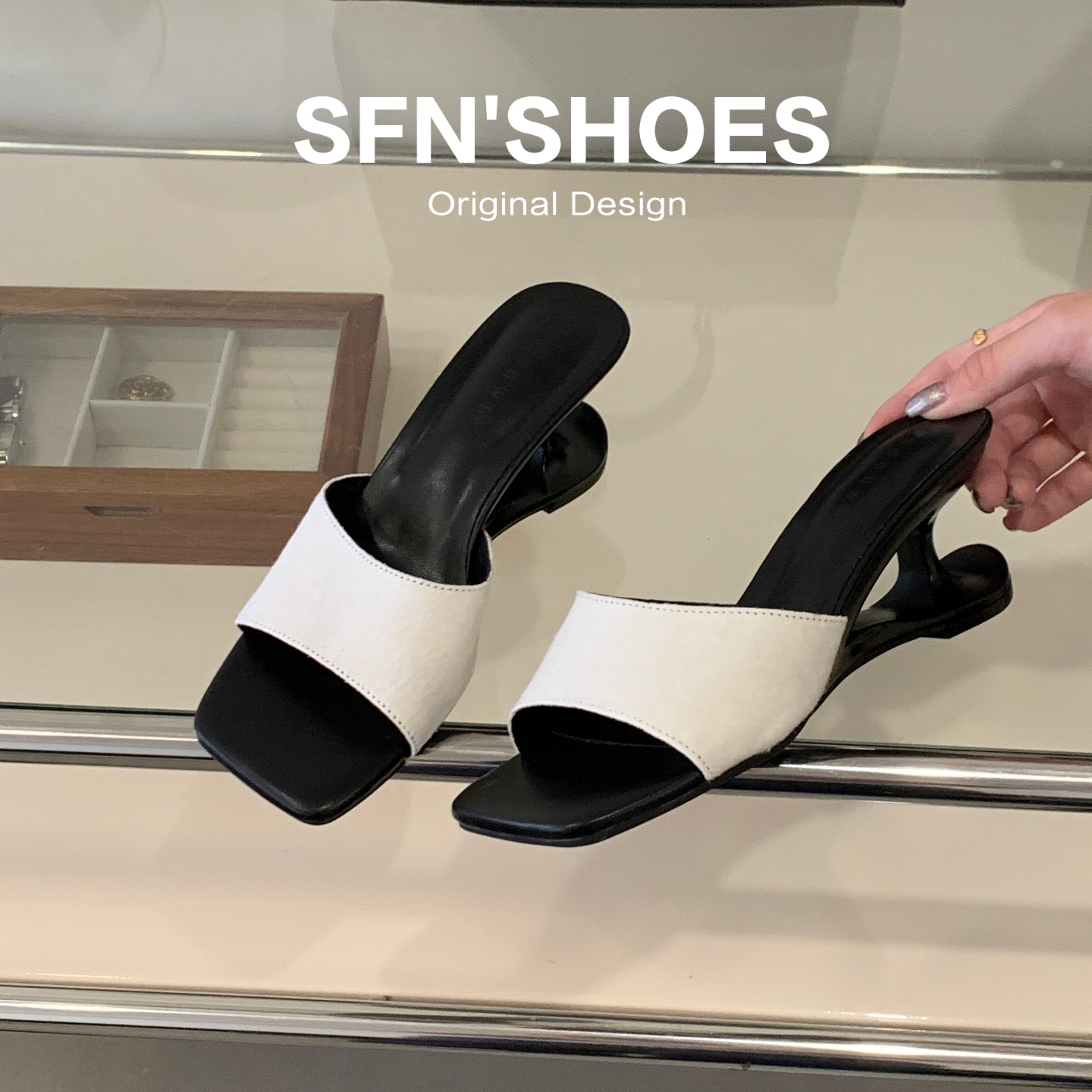 nnmiss/5cm法式优雅方头鱼纹套趾异型坡跟时尚百搭外穿露趾凉拖鞋