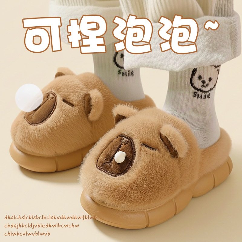 卡皮巴拉儿童拖鞋吐泡泡冬季2025新款软底宝宝男女童包根毛绒棉鞋