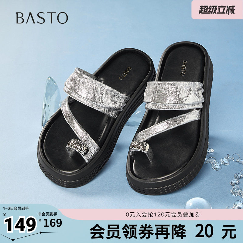 百思图夏季新款时尚户外潮流百搭时装拖厚底女拖鞋F2121BT5
