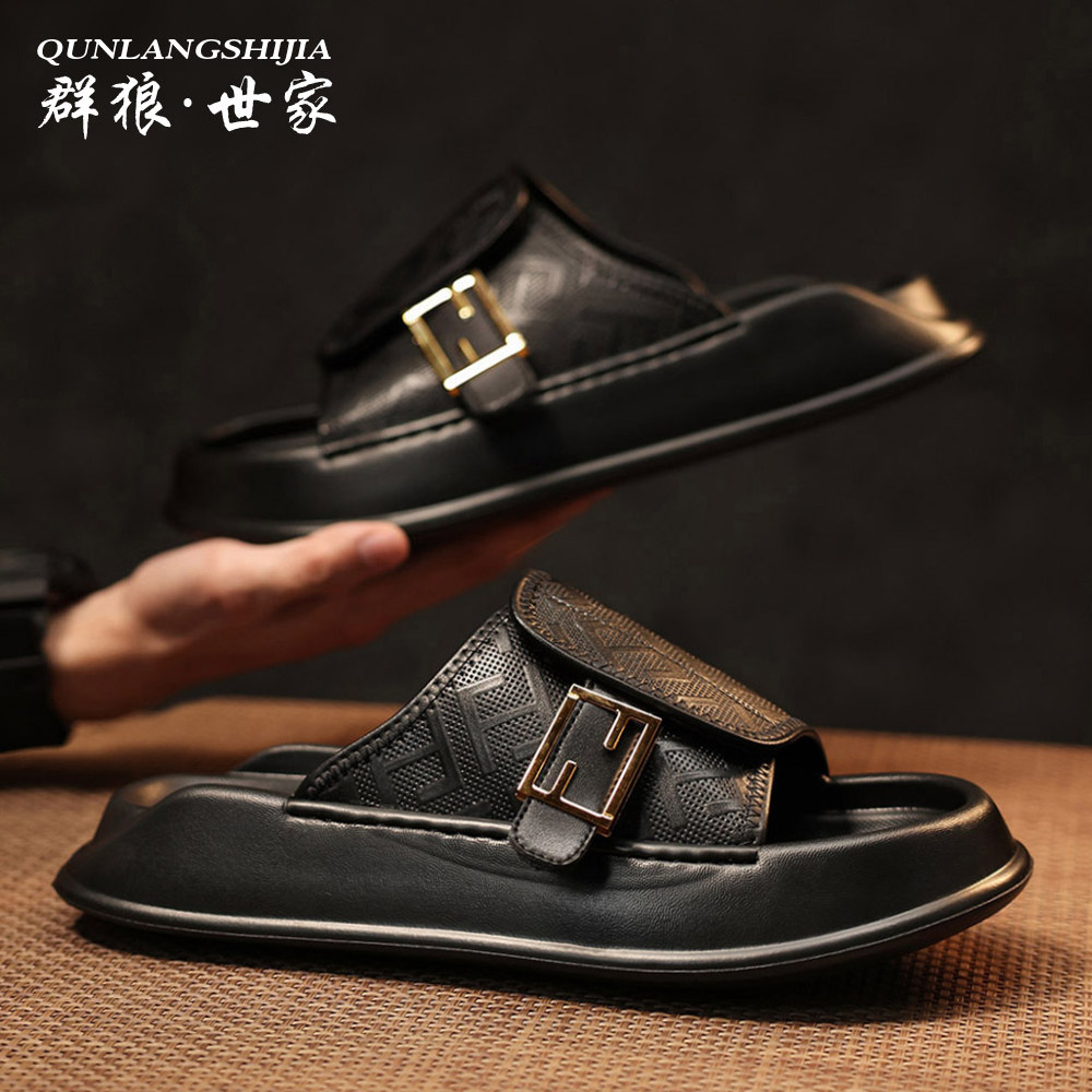 群狼世家男士拖鞋2026新款夏季外出高端凉鞋厚底防滑外穿一字凉拖