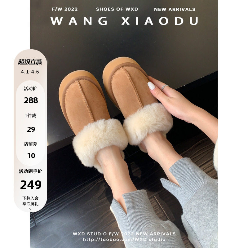 【王小毒】雪国游记●经典厚底毛鞋领羊皮毛一体毛毛拖鞋包头保暖