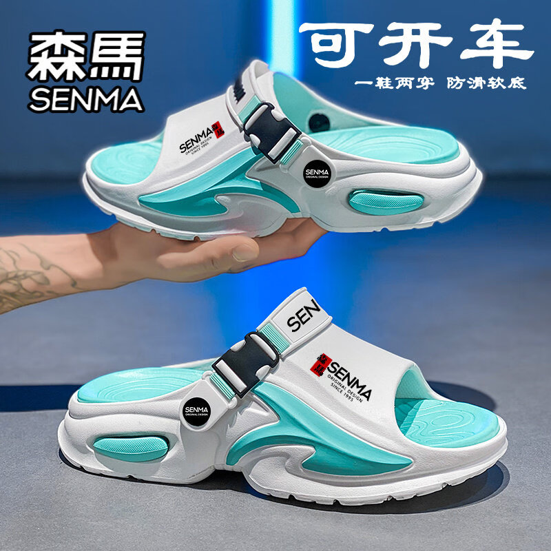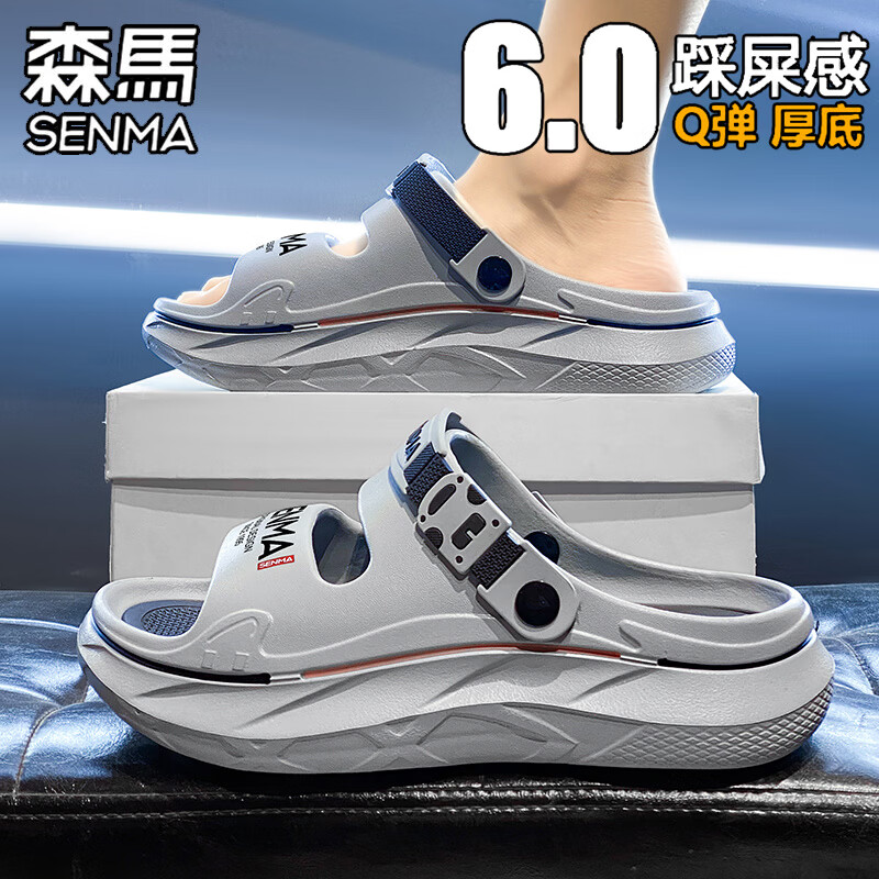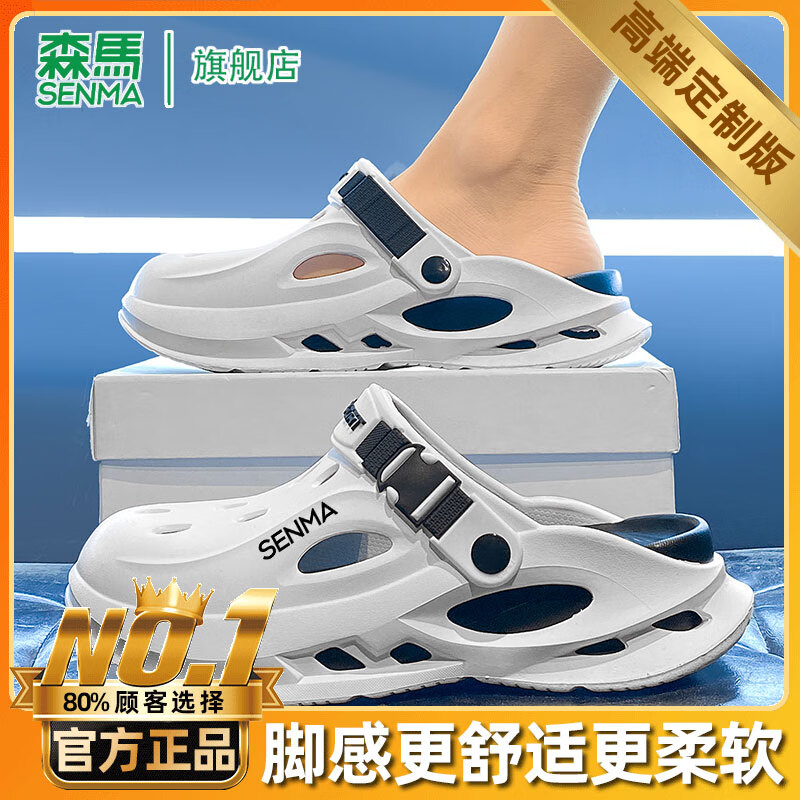 森馬拖鞋男士夏季情侣居家防滑踩屎感包头拖户外开车运动两用沙滩凉鞋 白黑【升级版】 44-45