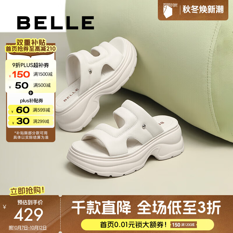 百丽(Belle)增高厚底拖鞋女舒适可外穿休闲拖鞋D6K1DBT5 米白 37 (235mm)