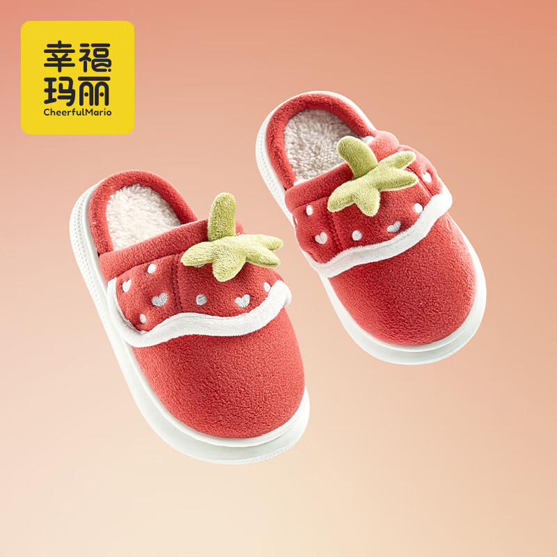 幸福玛丽女童棉拖鞋秋冬季小孩室内儿童毛拖鞋可爱男孩中大童亲子家居拖鞋 红色 24 内长16cm适合脚长15-15.5cm