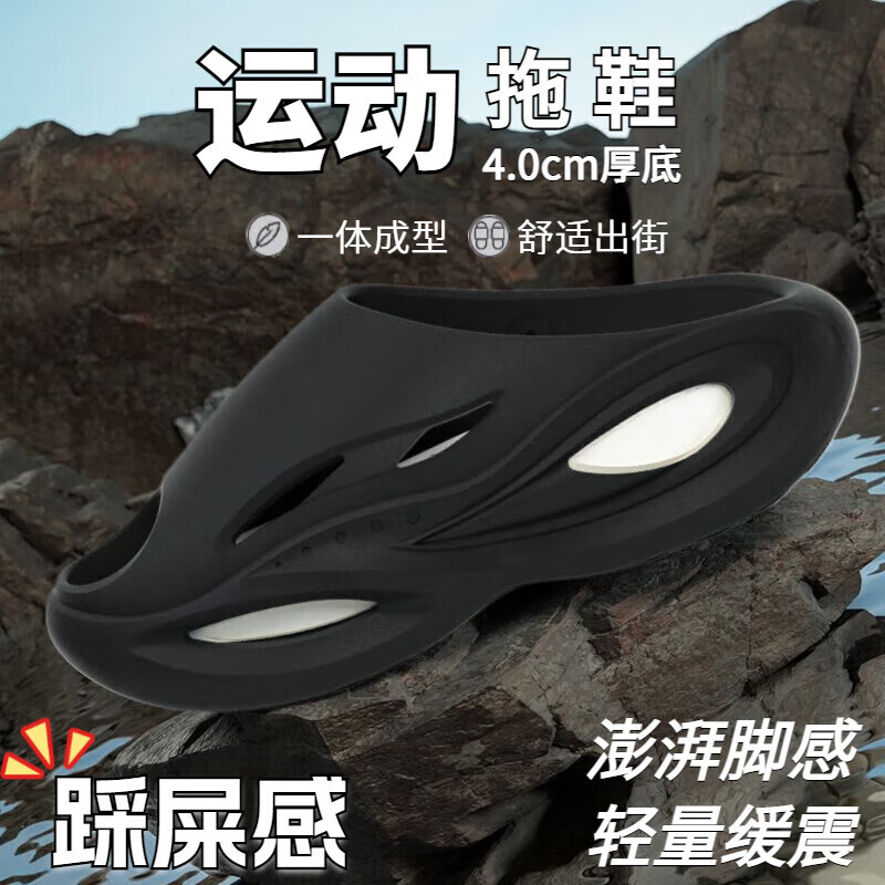 拖鞋男款运动夏季厚底外穿居家室内防滑防臭新款超软底男士沙滩 耀夜黑【升级版】 40-41