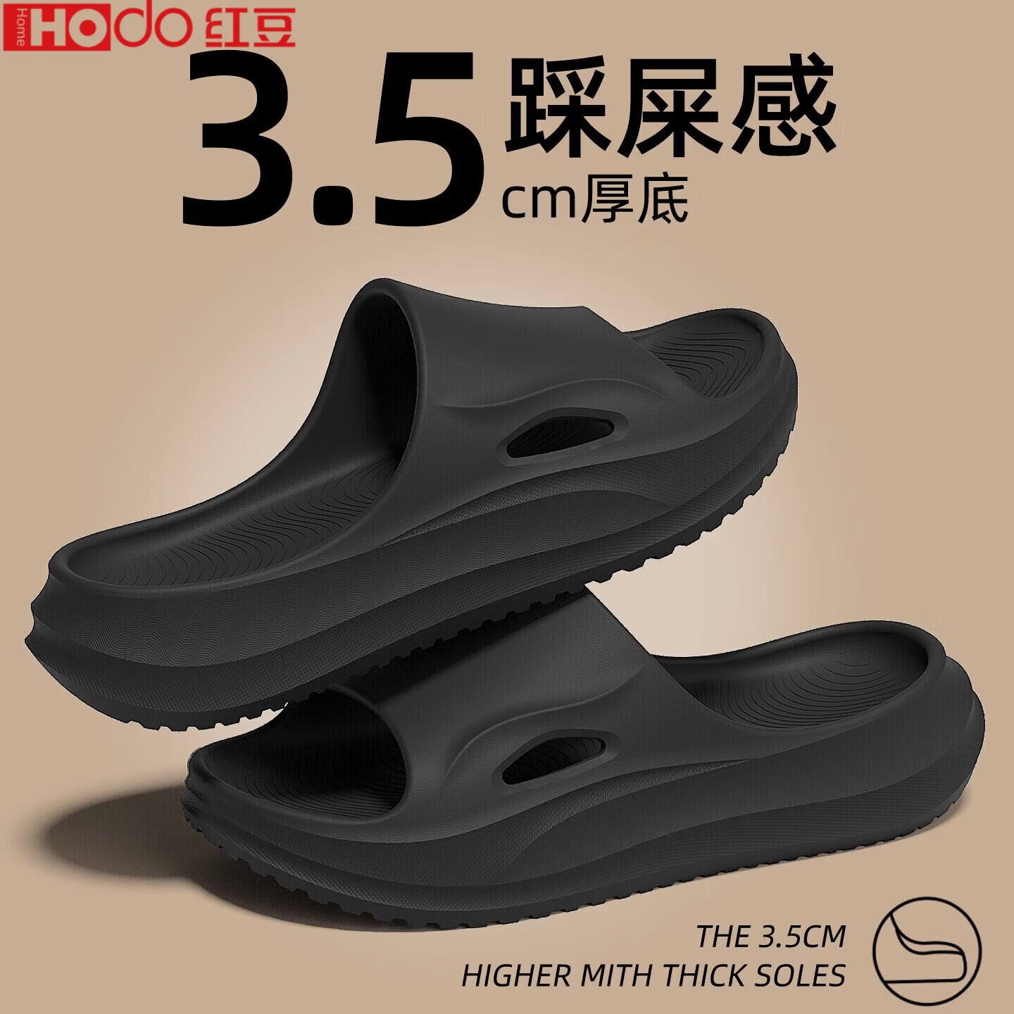红豆踩屎感凉拖鞋男2026四季新款室内居家简约浴室防滑可外穿凉拖女 黑色 44-45 正码
