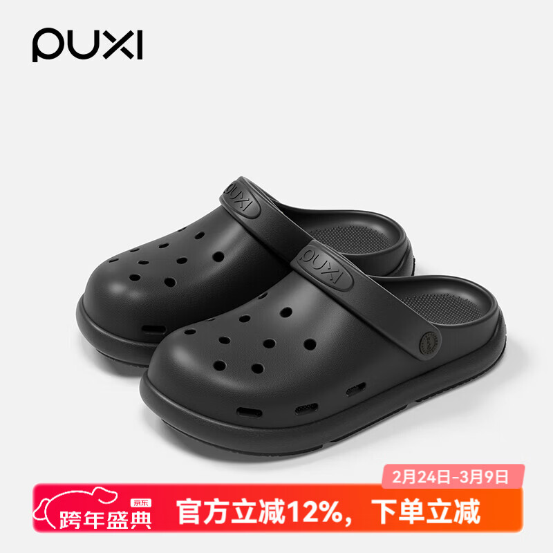 朴西2025夏季新款女士柔软舒适透气外穿包头拖鞋厚底防滑室外洞洞鞋男 珍珠黑 37-38