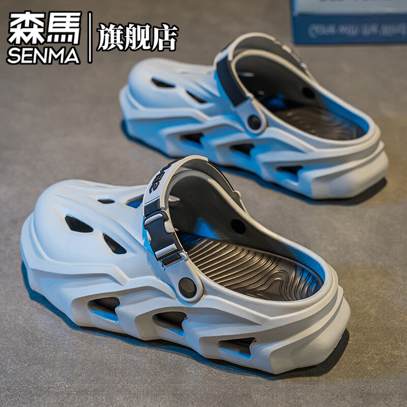 森馬包头拖鞋男款夏季潮流外穿防滑厚底踩屎感洞洞鞋开车两用沙滩凉鞋 灰黑 【基础款】 41 (40-41同码)