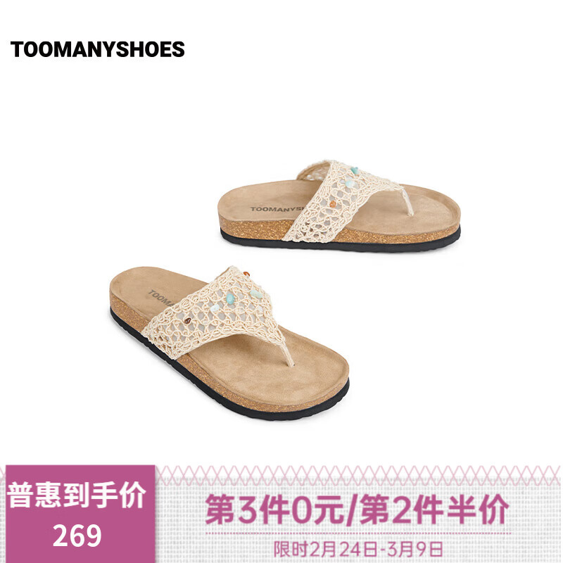 TOOMANYSHOES 糖果碎块25新款厚底夹脚人字拖勃肯鞋外穿拖鞋女鞋 杏色 39