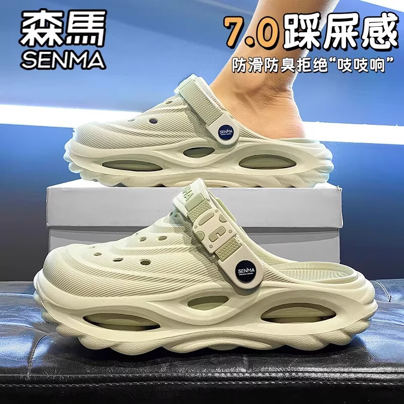森馬包头拖鞋男夏季外穿防滑防臭厚底耐磨踩屎感洞洞鞋户外沙滩凉鞋男 薄荷绿 【基础款】 38 (38-39 同码)
