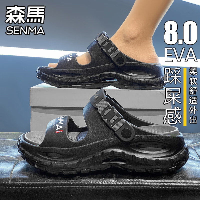 森馬拖鞋男款夏季防滑防臭大码耐磨踩屎感一字拖外穿休闲海边沙滩凉鞋 黑色 【基础款】 42 (42-43 同码)