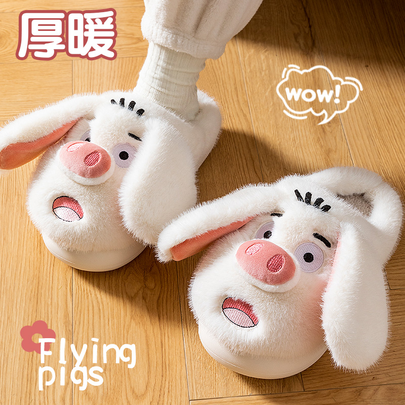可爱呆萌小猪毛毛棉鞋女2025新款可外穿毛绒拖鞋居家室内保暖棉鞋
