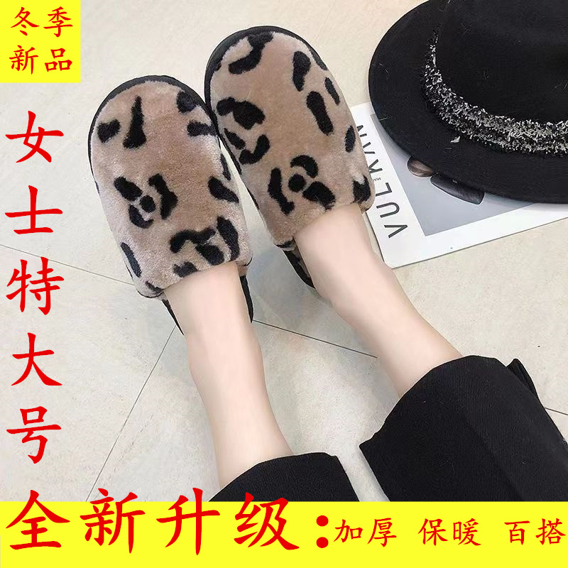 2025棉拖鞋女冬季新款平底家居室内家用情侣特大号45拖鞋女士豹纹