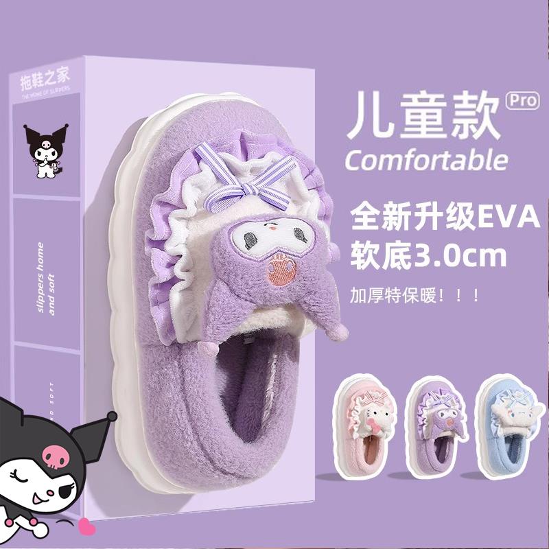 库洛米儿童棉拖鞋女童冬季2024新款包跟可爱宝宝毛绒保暖亲子棉鞋