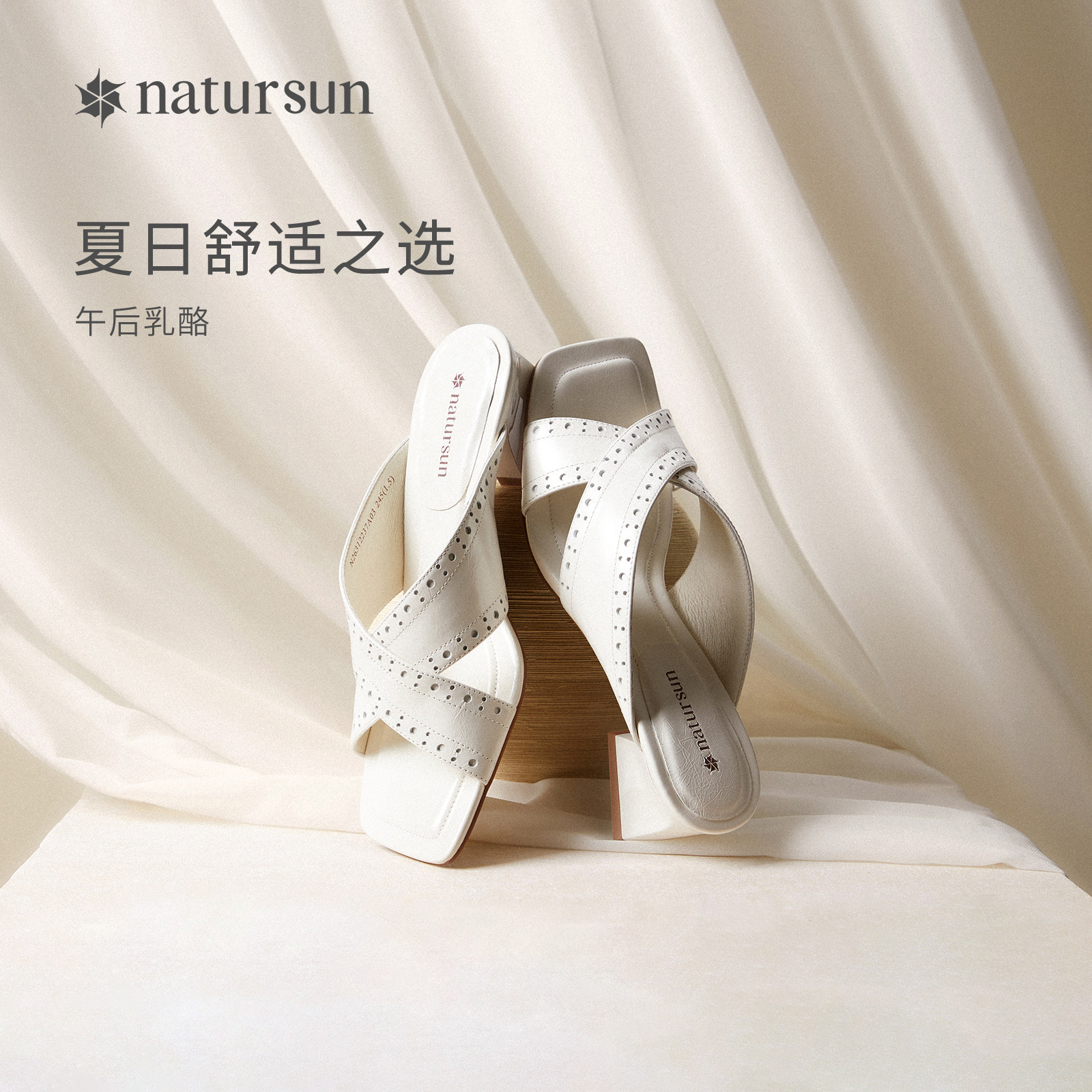 natursun艺术高跟凉鞋女士2026新款夏季复古简约时尚方头粗跟拖鞋