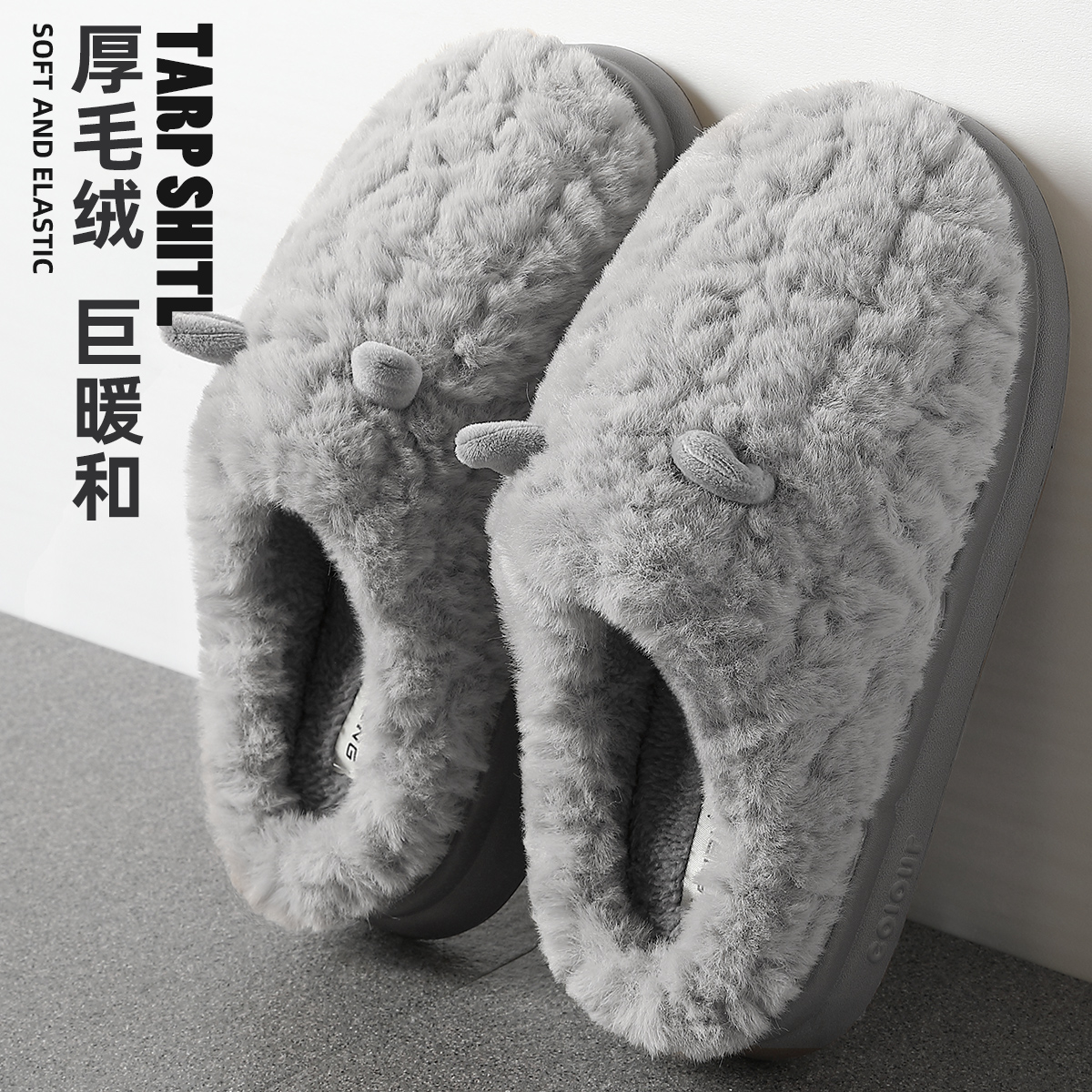踩屎感棉拖鞋女士秋冬季室内家居防滑厚底保暖加绒毛毛情侣棉拖男