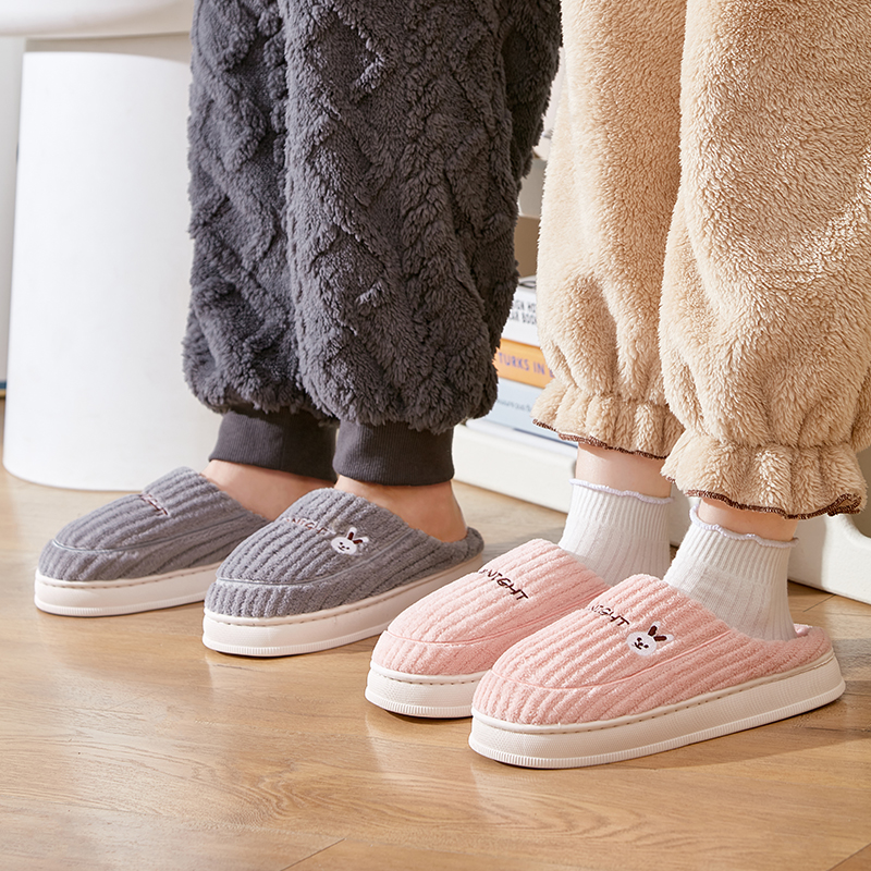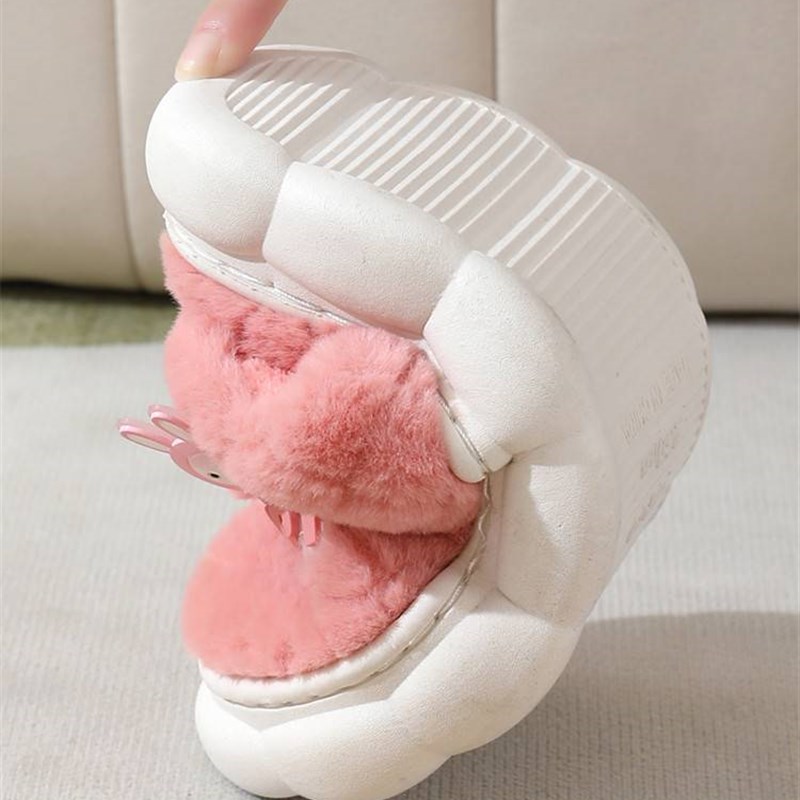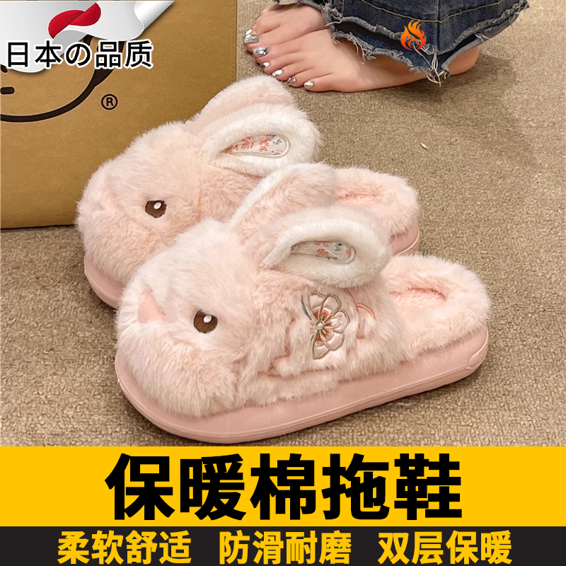 日本外穿厚底棉拖鞋女2025冬季新款室内居家加绒保暖可爱毛绒兔子