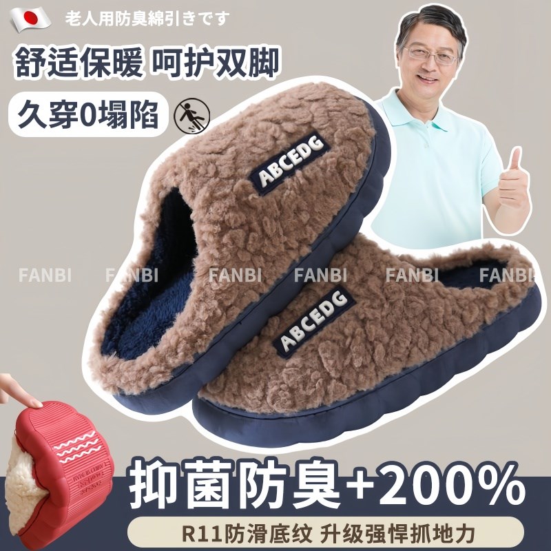 日式棉拖鞋防滑老人情侣款一男一女2024新款冬季加厚加绒家用软底