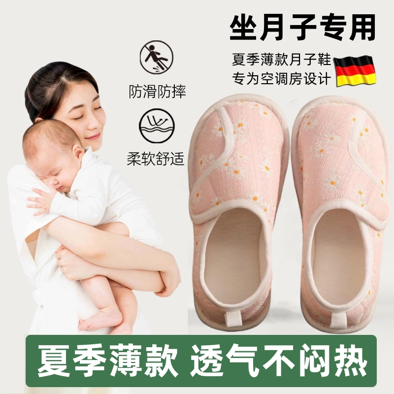 月子鞋夏季薄款产后夏天67月份大码透气包跟软底孕妇专用防滑拖鞋