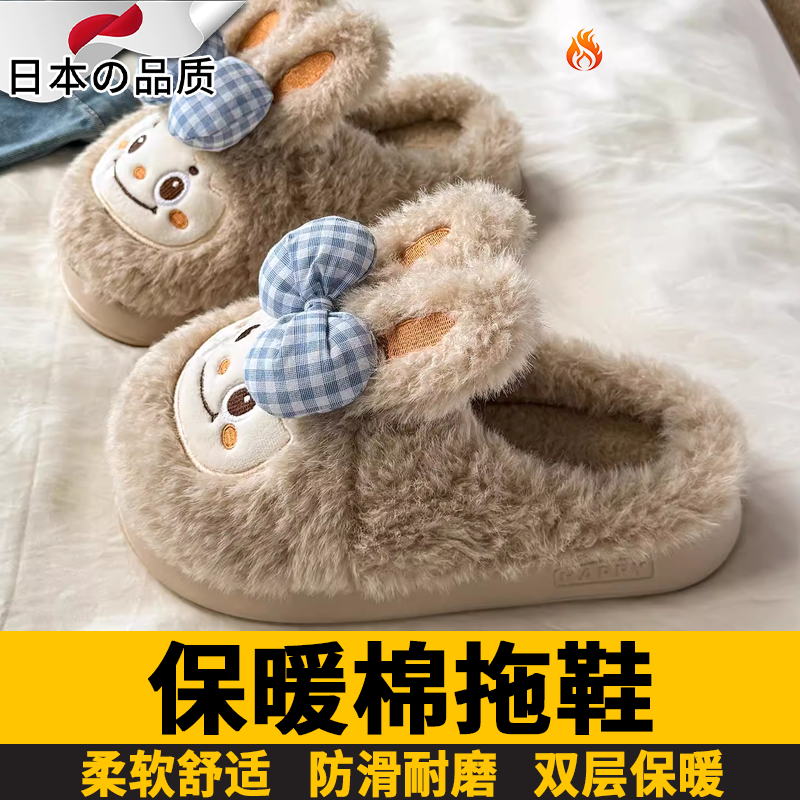 日本卡通棉拖鞋女款秋冬季2025新款室内家居保暖毛绒防滑厚底可爱