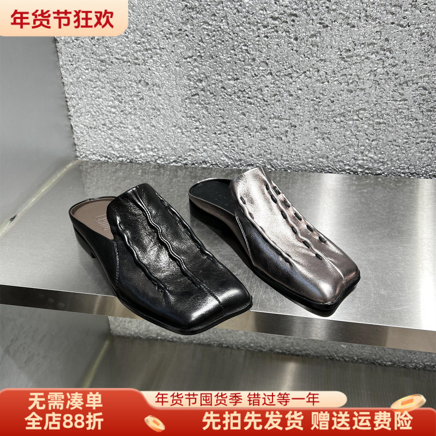 欧洲站女鞋2026春新款欧货真皮包头拖平跟一脚蹬懒人外穿半拖鞋潮