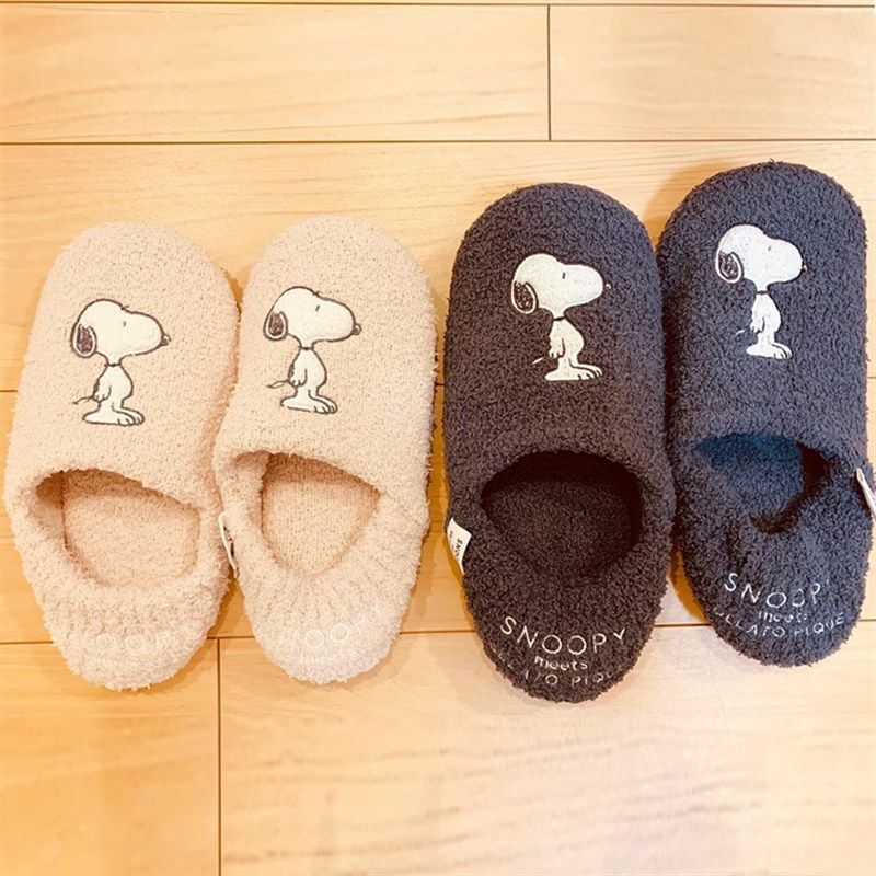 日系软绵绵圣诞史努B秋冬可爱情侣保暖静音地板拖鞋男女包跟棉鞋