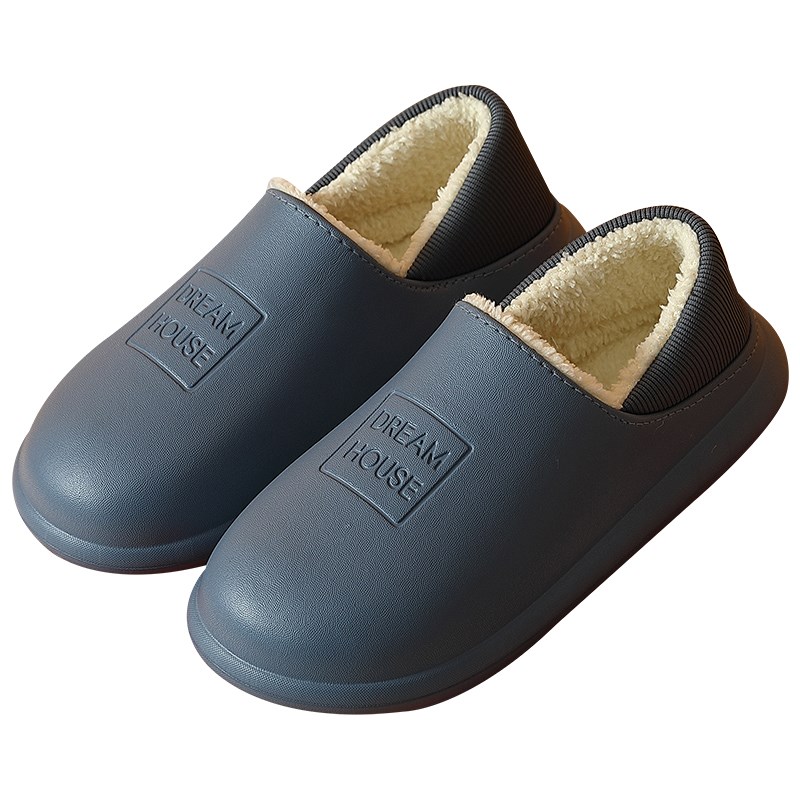 2025新款加绒防水棉拖鞋女室内保暖厚底EVA外穿毛绒勃肯鞋男秋冬