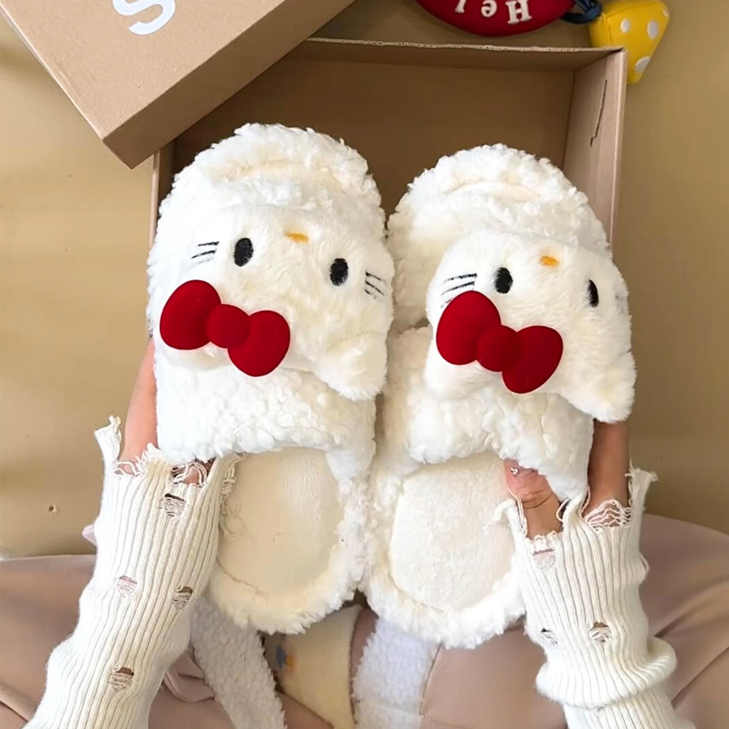 kt猫棉拖鞋女2025新款家居室内毛绒拖鞋秋冬保暖防滑可外穿一字拖