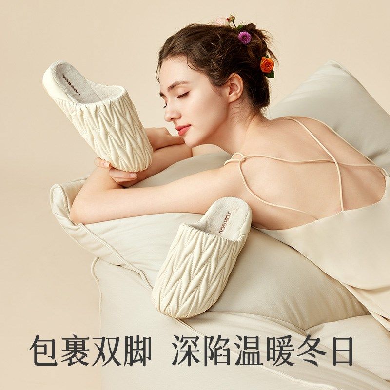 冬季可爱日式布艺拖鞋女室内家居情侣一对软底静音防滑冬季款家用