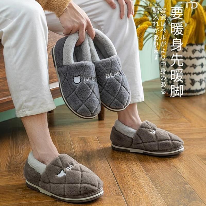 日式简约棉拖鞋男士秋冬季室内家用保暖木地板加绒厚底毛拖鞋秋冬