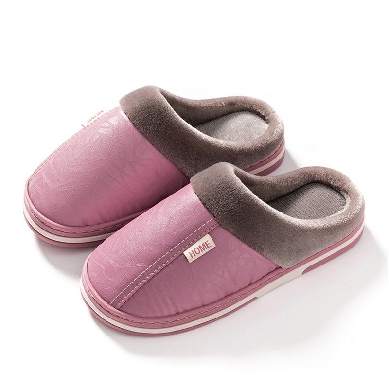 防滑棉拖鞋老年人冬季防水保暖中年皮居家室内厚底男女士