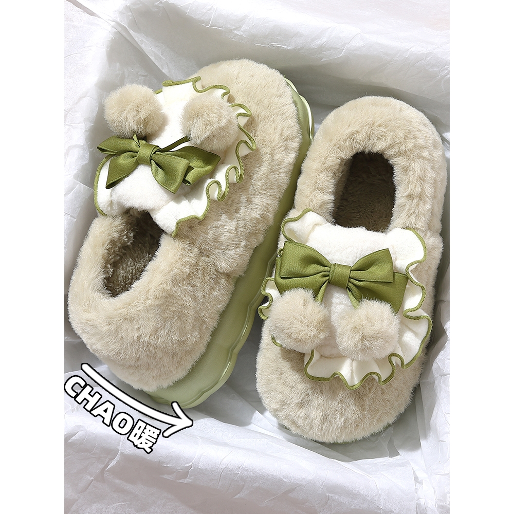 蝴蝶结棉拖鞋女保暖防滑厚底居家日用外穿时尚百搭加绒秋冬棉拖鞋