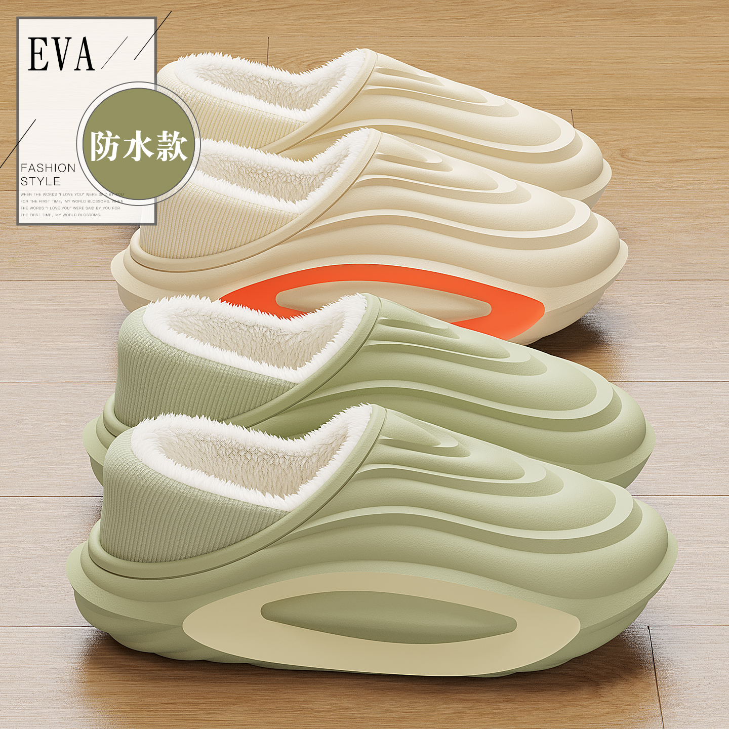 防水棉拖鞋男士冬季包跟室内家居防滑厚底保暖加绒女款棉鞋男外穿