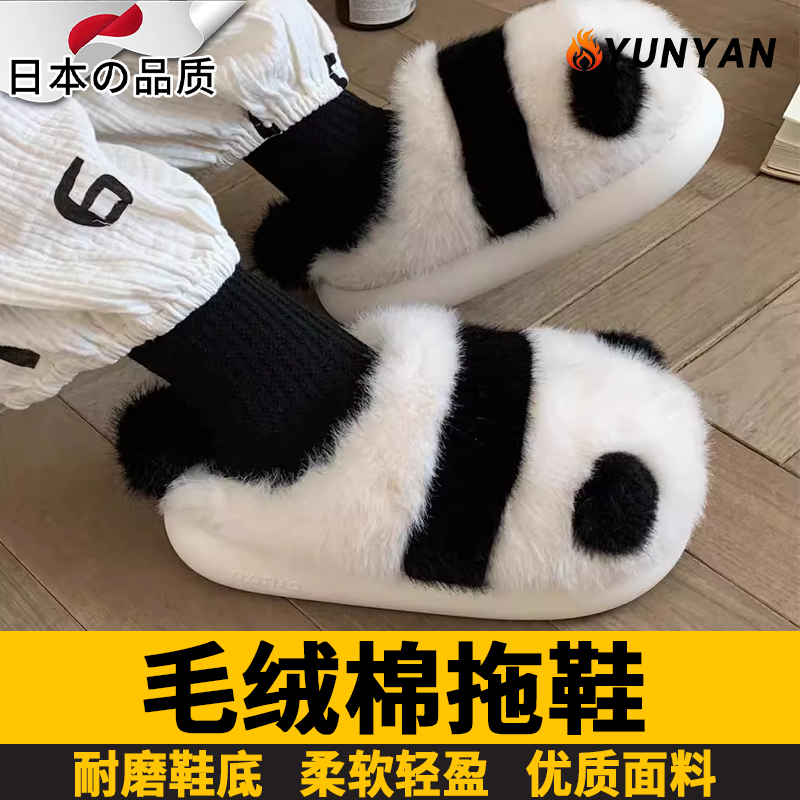 日本熊猫棉拖鞋女冬季室内居家用防滑可爱毛绒保暖月子软