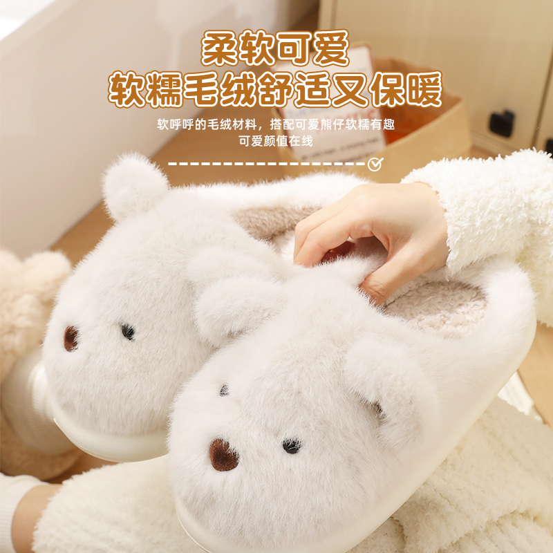 可爱白熊棉拖鞋秋冬季男女室内居家加绒保暖外穿情侣毛毛绒棉拖